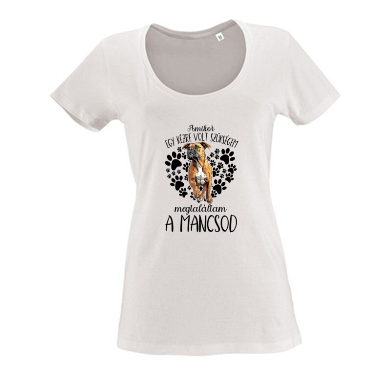 Feltétlen hűség és bizalom! Szinte mindenki ezzel kezdené, ha ismertetnie kellene egy kutya jellemét. Megmagyarázhatatlan rajongás és bizalom árad ezekből a fantasztikus állatokból, akiket így nem csoda, hogy olyan sok ember imád. Legyen kistestű, nagytestű, hosszú szőrű vagy rövid, fajtiszta, vagy keverék, csintalan esetleg a család hangulatfelelőse, biztos, hogy számtalan emlékezetes percet és rengeted boldog évet ajándékoznak ezek a rendkívüli négylábúak a gazdáiknak. Ha Te is oda (meg vissza) vagy a kutyákért, és feldobnád a ruhatárad valami egyedi darabbal, akkor nem is kell tovább keresgélned! A Megtaláltam a mancsod Boxer mintás kutyás pólónk az állatbarátok nagy kedvence, így biztosak vagyunk benne, hogy a Te szívedet is megdobogtatja majd!