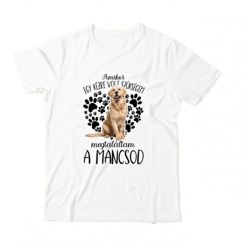 Ajándékot keresel egy kutyarajongó ismerősödnek? A Megtaláltam a mancsod  Golden retriever mintás Kutyás pólónk ajándéknak is kiváló!
