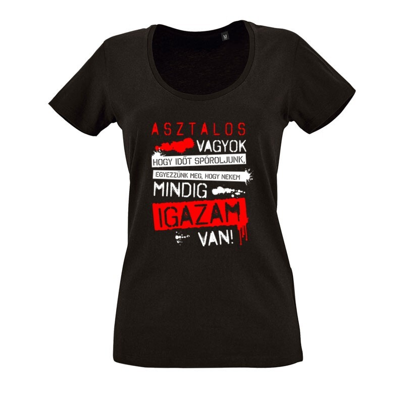 Asztalos vagyok igazam van O nyakú női póló