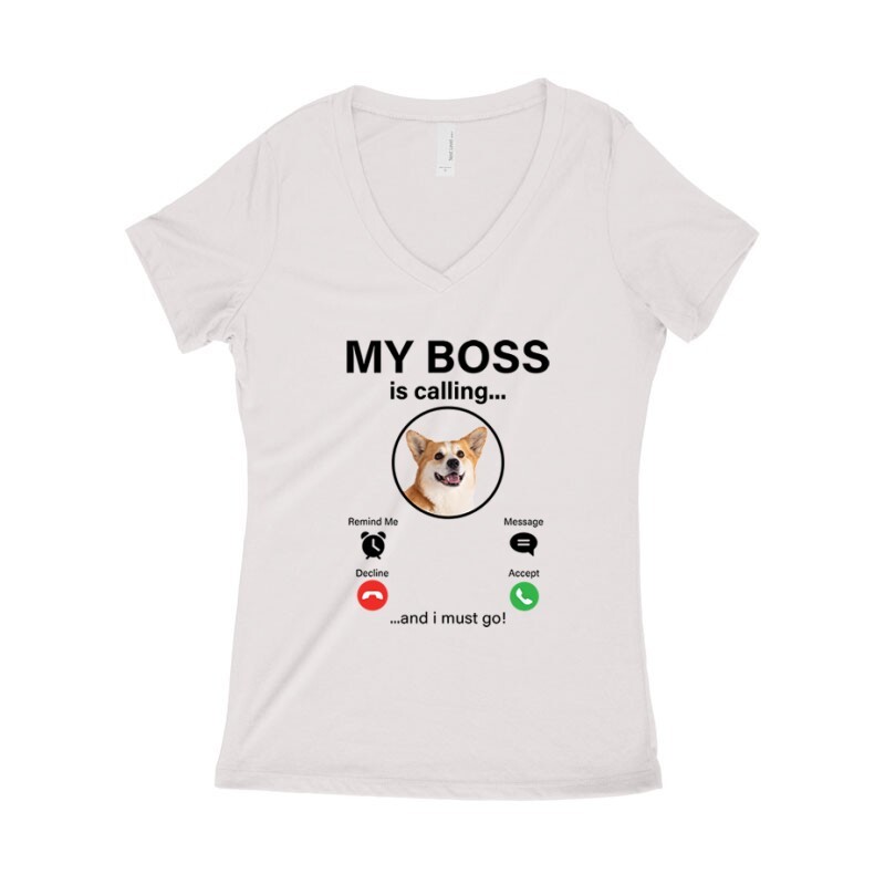 My Boss Calling Corgi Női póló V kivágott