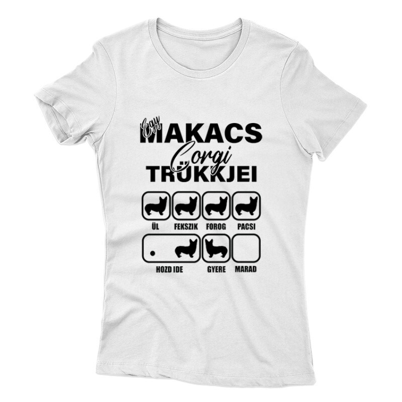 A Makacs Corgi Trükkjei mintás Kutyás póló megrendelhető női, férfi és gyerek fazonban egyaránt S-től 3XL-es méretig.