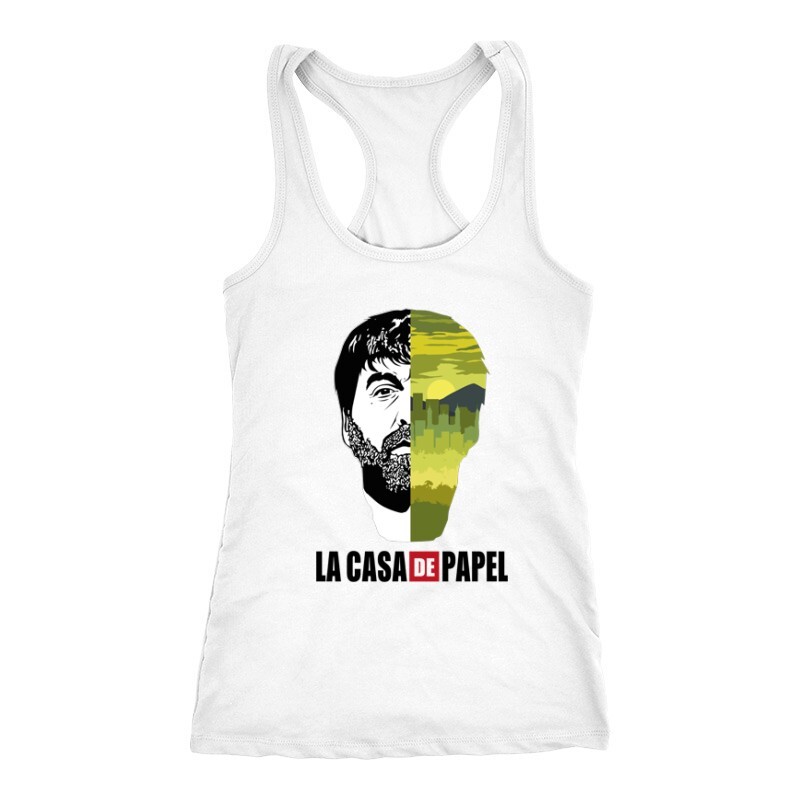 A nagy pénzrablás sorozat (mely Money Heist, vagy éppen La Casa De Papel néven ismert) a Netflix egyik új, de annál népszerűbb spanyol sorozata. Jó sztori, jó szereplők, jó képi világ. Ha Neked is kedvenceddé vált a sorozat, akkor a nagy pénzrablás Bogota city & face mintás pólónk remek választás lesz számodra!