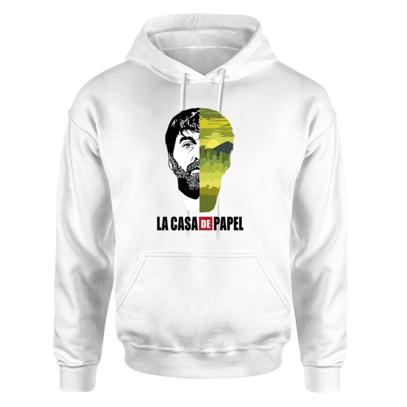 A nagy pénzrablás sorozat (mely Money Heist, vagy éppen La Casa De Papel néven ismert) a Netflix egyik új, de annál népszerűbb spanyol sorozata. Jó sztori, jó szereplők, jó képi világ. Ha Neked is kedvenceddé vált a sorozat, akkor a nagy pénzrablás Bogota city & face mintás pólónk remek választás lesz számodra!