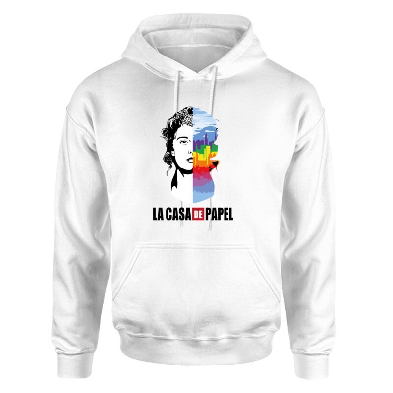 A nagy pénzrablás (spanyolul: La casa de papel) spanyol bűnügyi drámasorozat, mely egy hosszabb és 3 rövidebb évadból áll. Érdekessége, hogy eredetileg 2017-ben vetítették, majd még ebben az évben a Netflix vette át a sorozatot, vágta újra, majd egészítette ki 4 évadosra. A Professzor által vezetett rablóbanda a madridi Spanyol Királyi Pénzverde elleni támadásának izgalmai és a városokról kapott fedőneveket viselő banditák története hamar belopta magát a nézők szívébe, és igen nézett műsor lett a Netflixen. Téged is magával ragadott az izgalmas történet, Tokio és a banda többi tagjának kalandjai? Igazi sorozat függővé váltál? Akkor A nagy pénzrablás Stockholm City & Face mintás póló igazán Neked való választás lesz!
