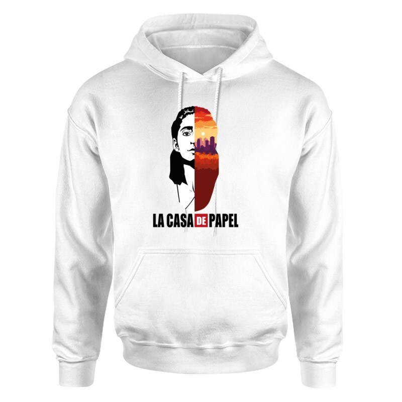A nagy pénzrablás (spanyolul: La casa de papel) spanyol bűnügyi drámasorozat, mely egy hosszabb és 3 rövidebb évadból áll. Érdekessége, hogy eredetileg 2017-ben vetítették, majd még ebben az évben a Netflix vette át a sorozatot, vágta újra, majd egészítette ki 4 évadosra. A Professzor által vezetett rablóbanda a madridi Spanyol Királyi Pénzverde elleni támadásának izgalmai és a városokról kapott fedőneveket viselő banditák története hamar belopta magát a nézők szívébe, és igen nézett műsor lett a Netflixen. Téged is magával ragadott az izgalmas történet, Tokio és a banda többi tagjának kalandjai? Igazi sorozat függővé váltál? Akkor A nagy pénzrablás Nairobi City & Facemintás póló igazán Neked való választás lesz!