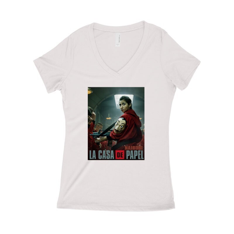 Ajándékot keresel egy sorozat fan ismerősödnek? A nagy pénzrablás Nairobi with gunmintás póló ajándéknak is kiváló!