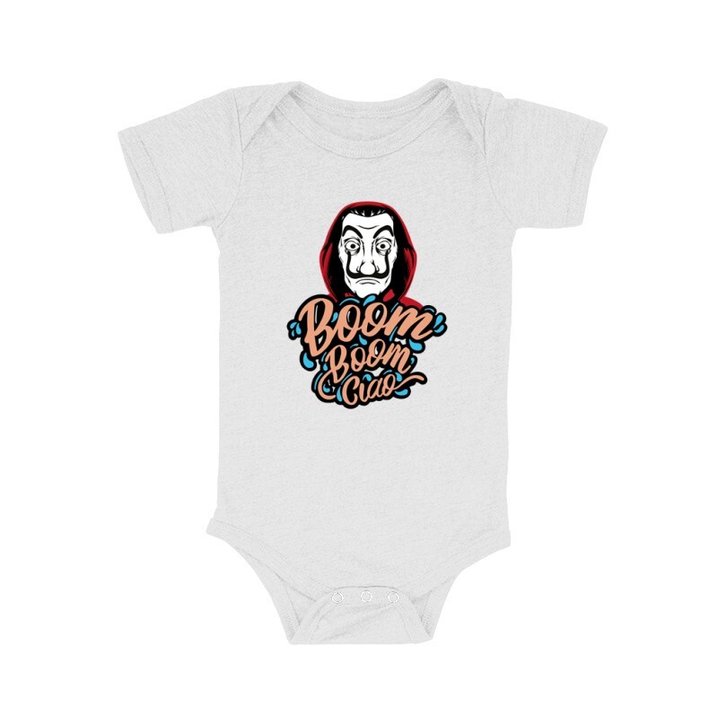 Ajándékot keresel egy sorozat fan ismerősödnek? A nagy pénzrablás Boom Boom Ciao mintás póló ajándéknak is kiváló!
