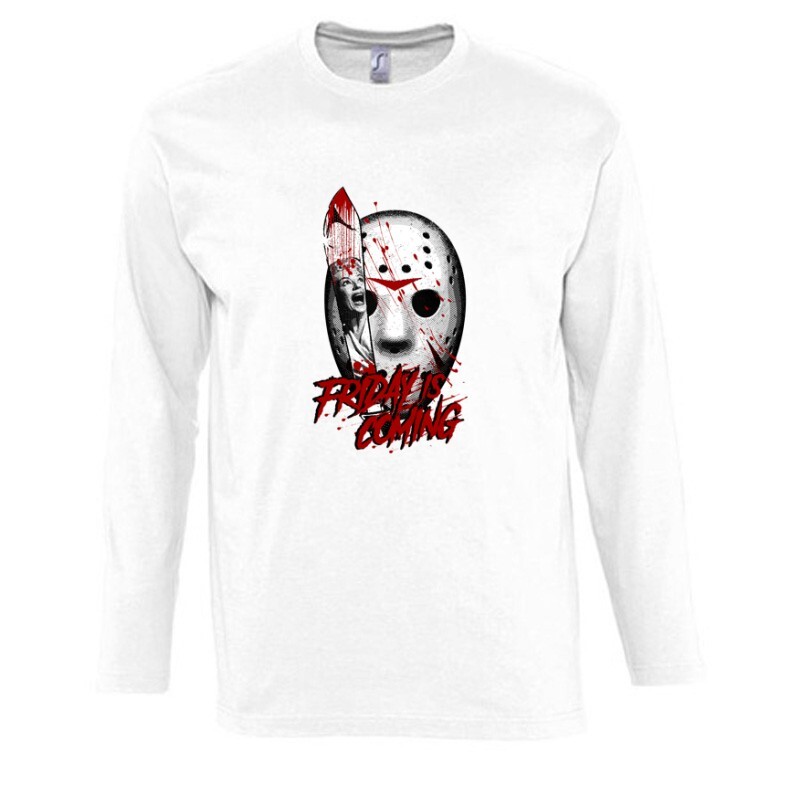 Egy Friday is coming mintás pólóban Te is felidézheted milyen is a péntek 13-ai rettegés!