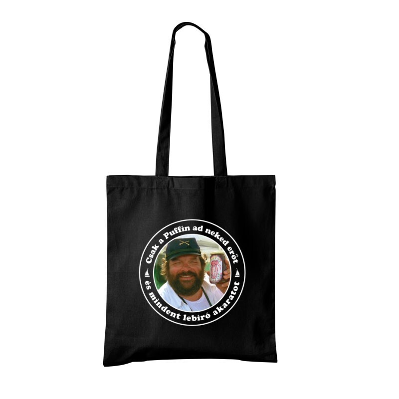 Bud Spencer és Terence Hill Csak a puffin ad neked erőt és mindent lebíró akaratot mintás bevásárlótáska - mert környezetbarát, ha nem veszel mindig új nejlonzacskót