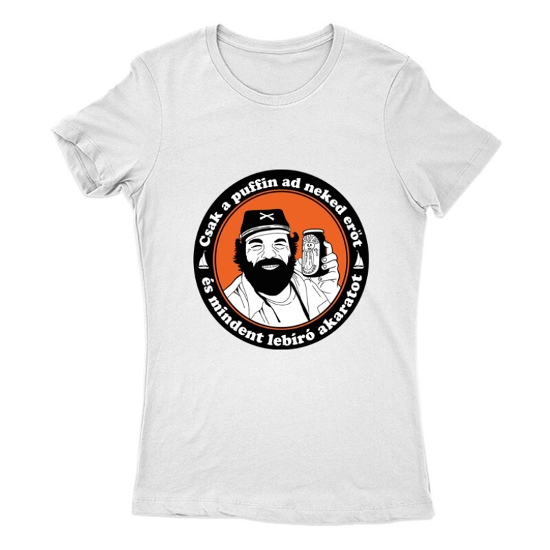 Bud Spencer és Terence Hill Csak a puffin ad neked erőt és mindent lebíró akaratot mintás pólóink megrendelhetők női, férfi és gyerek fazonban egyaránt S-től 3XL-es méretig.