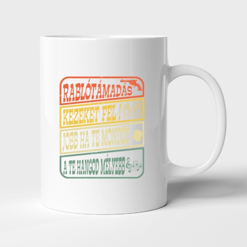 Rablótámadás, kezeket fel! (kopott) Bögre