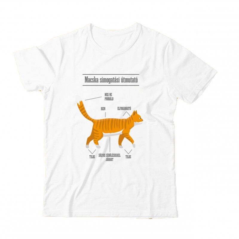 Az Simogatási útmutató mintás Macskás póló megrendelhetők női, férfi és gyerek fazonban egyaránt S-től 3XL-es méretig.