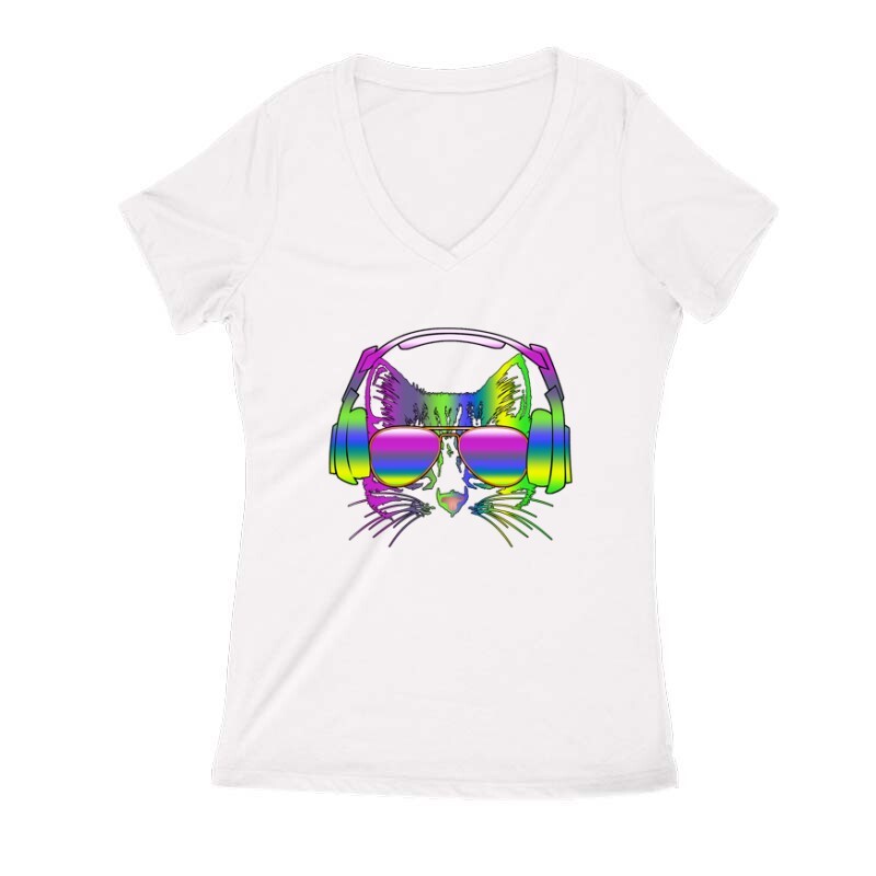 Rainbow music cat Női V Kivágott póló