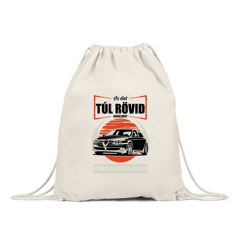 Autós Élet Túl Rövid ( Alfa) mintás hátizsák - hogy legyen mibe pakolni az egyedi mintás pólókat!