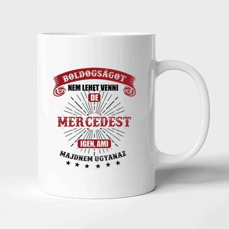 Autós Boldogságot Nem Lehet (Merci) mintás bögre - mert a műhelyben mindig elkél egy bögre jó kávé