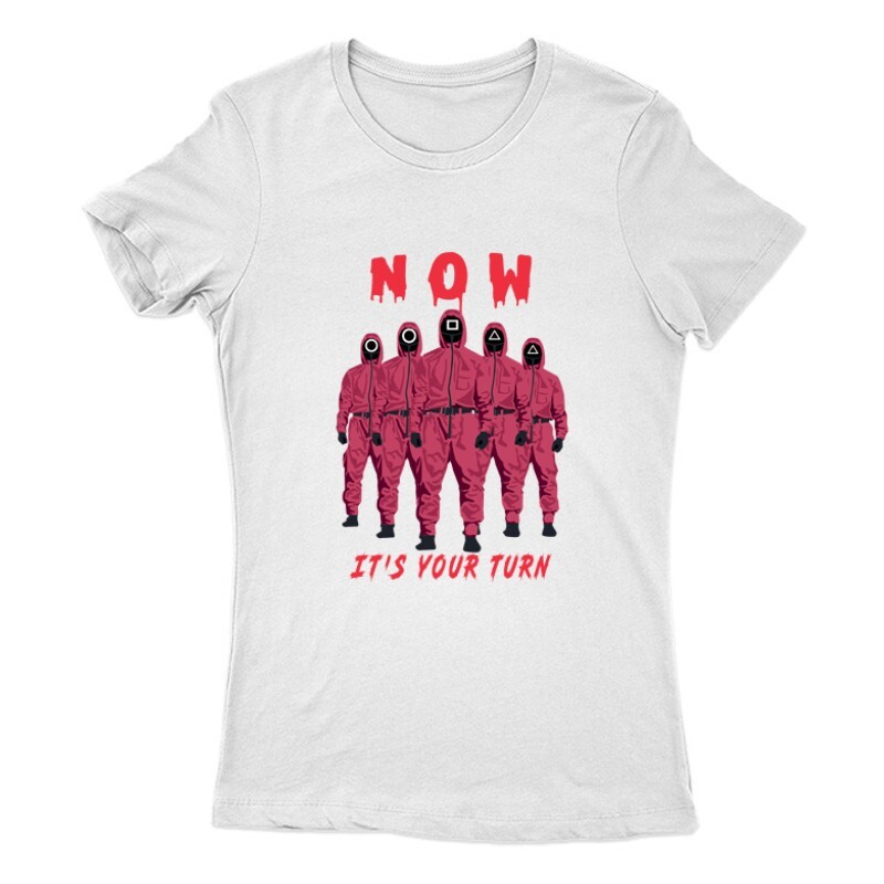 Téged is magával ragadott az izgalmas történet? Igazi sorozat függővé váltál? Akkor A Squid game It's Your turn mintás póló igazán Neked való választás lesz!