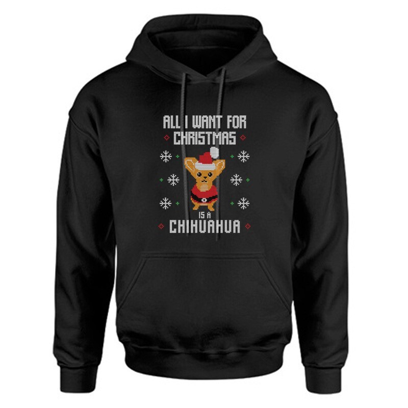Szerinted létezik a Télapó? Vagy a Jézuska? Erre sajnos nem tudjuk a választ, de abban biztosak vagyunk, hogy ha te is imádod az Ünnepeket, akkor a All i want chihuahua mintás pólónkban nem fogsz csalódni!