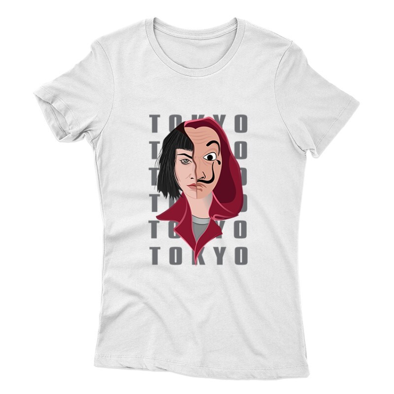 A nagy pénzrablás sorozat (mely Money Heist, vagy éppen La Casa De Papel néven ismert) a Netflix egyik új, de annál népszerűbb spanyol sorozata. Jó sztori, jó szereplők, jó képi világ. Ha Neked is kedvenceddé vált a sorozat, akkor a nagy pénzrablás Tokyo Half Mask mintás pólónk remek választás lesz számodra!