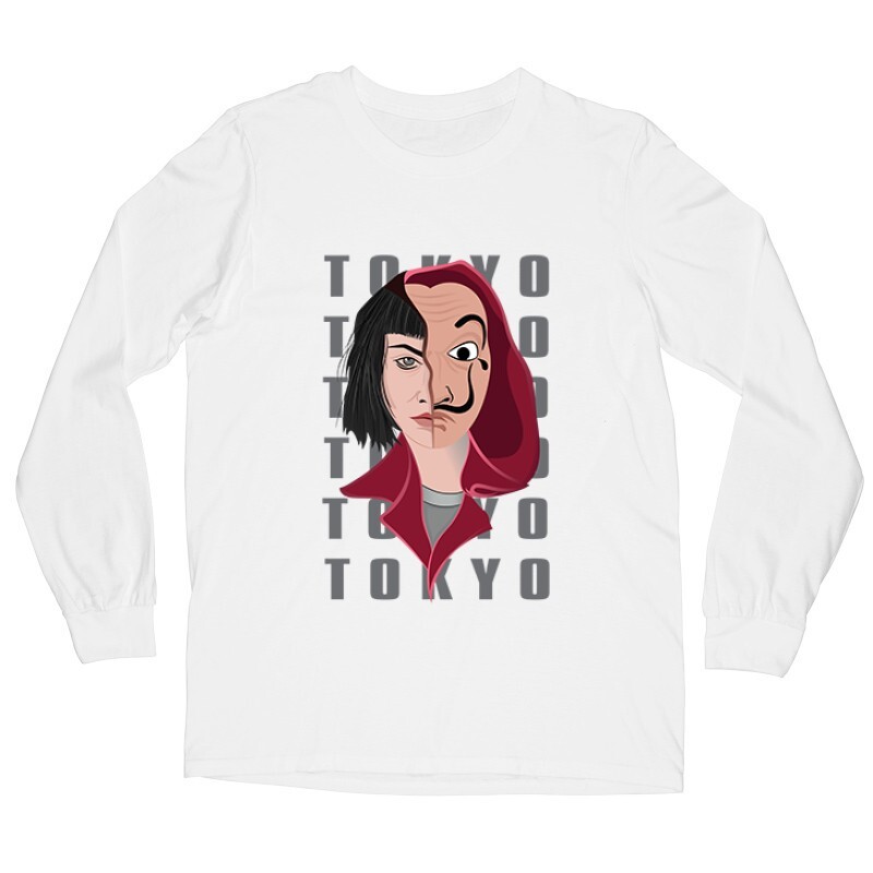 A nagy pénzrablás sorozat (mely Money Heist, vagy éppen La Casa De Papel néven ismert) a Netflix egyik új, de annál népszerűbb spanyol sorozata. Jó sztori, jó szereplők, jó képi világ. Ha Neked is kedvenceddé vált a sorozat, akkor a nagy pénzrablás Tokyo Half Mask mintás pólónk remek választás lesz számodra!