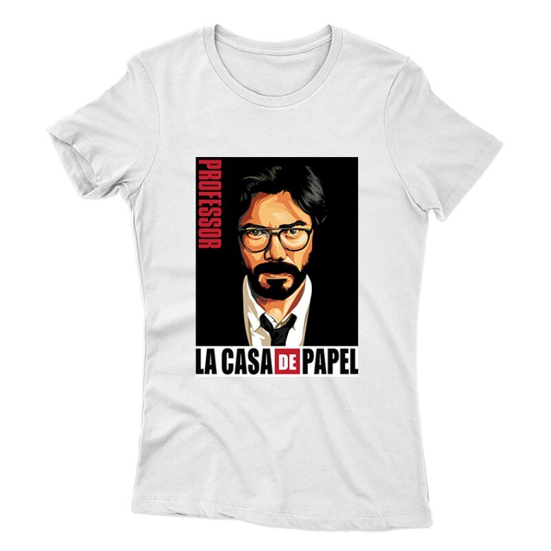 A nagy pénzrablás sorozat (mely Money Heist, vagy éppen La Casa De Papel néven ismert) a Netflix egyik új, de annál népszerűbb spanyol sorozata. Jó sztori, jó szereplők, jó képi világ. Ha Neked is kedvenceddé vált a sorozat, akkor a nagy pénzrablás Professor Portrait mintás pólónk remek választás lesz számodra!