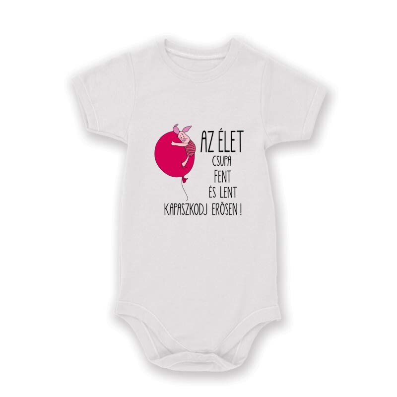 Az Az élet csupa fent és lent micimackó és malacka mintás póló azoknak készült, akik szeretnék felturbózni a cukiság faktort egy igazán testhezálló ruhadarabbal!