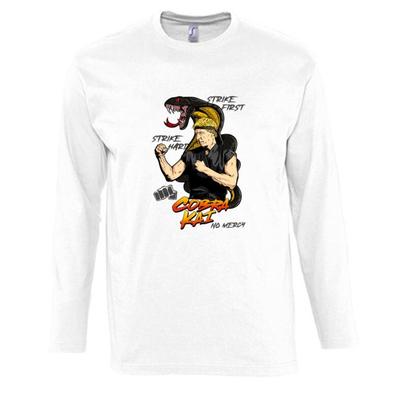 Érdekessége, hogy eredetileg 1984-ben vetítették, majd többször újragondolták, végül sorozat is készült. Téged is magával ragadott az izgalmas történet? Igazi sorozat függővé váltál? Akkor A Johnny Lawrence & Cobra mintás póló igazán Neked való választás lesz!