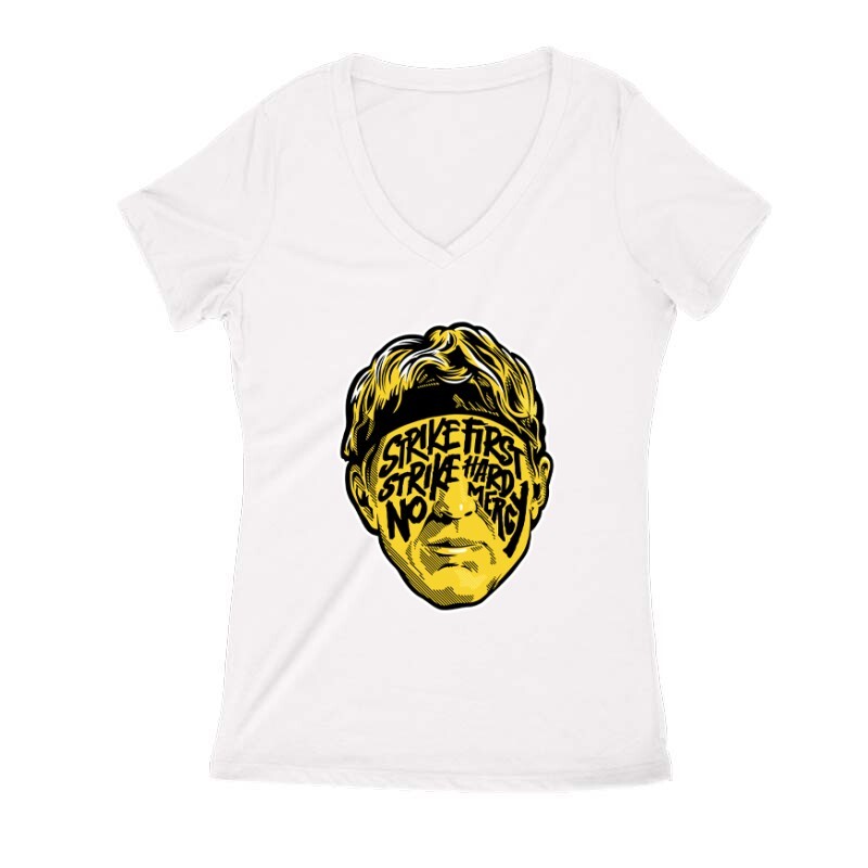A Cobra Kai a Netflix egyik új, de annál jópofább sorozata. Jó sztori, jó szereplők, jó képi világ. Ha Neked is kedvenceddé vált a sorozat, akkor a Lawrence Strike First Strike Hard No Mercy mintás pólónk remek választás lesz számodra!