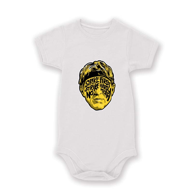 A Cobra Kai a Netflix egyik új, de annál jópofább sorozata. Jó sztori, jó szereplők, jó képi világ. Ha Neked is kedvenceddé vált a sorozat, akkor a Lawrence Strike First Strike Hard No Mercy mintás pólónk remek választás lesz számodra!