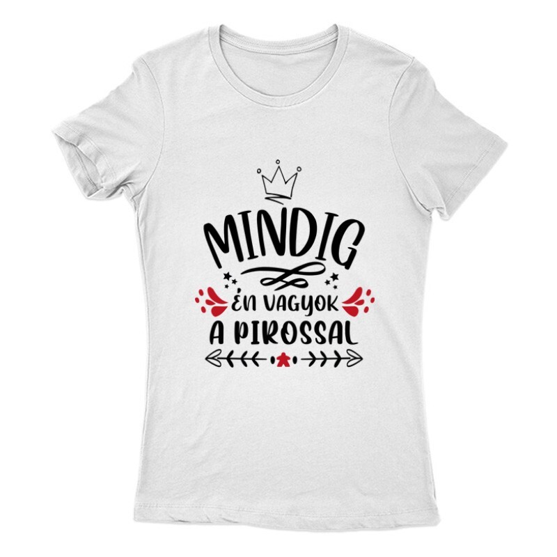 Az Mindig Én vagyok a pirossal mintás Társasjátékos póló megrendelhető női, férfi és gyerek fazonban egyaránt S-től 3XL-es méretig.