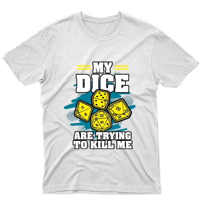 Az My dice are trying to kill me mintás Társasjátékos póló megrendelhető női, férfi és gyerek fazonban egyaránt S-től 3XL-es méretig.
