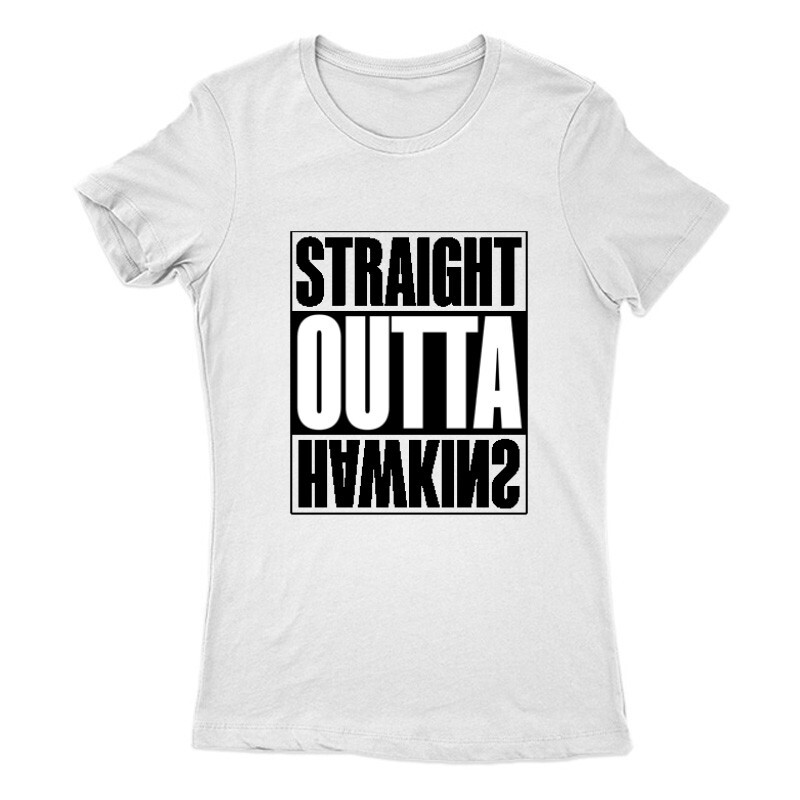 Ha Te is a sorozat lelkes rajongóinak a táborát erősíted, akkor Neked bizony egy egyedi Stranger Things Straight outta Hawkins mintás póló a jó választás!