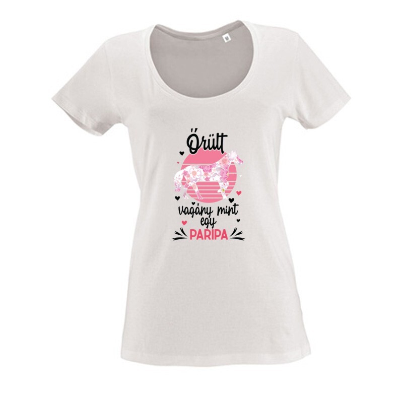 Az Őrült, vagyány mint egy paripa mintás lovas póló megrendelhető női, férfi és gyerek fazonban egyaránt S-től 3XL-es méretig.