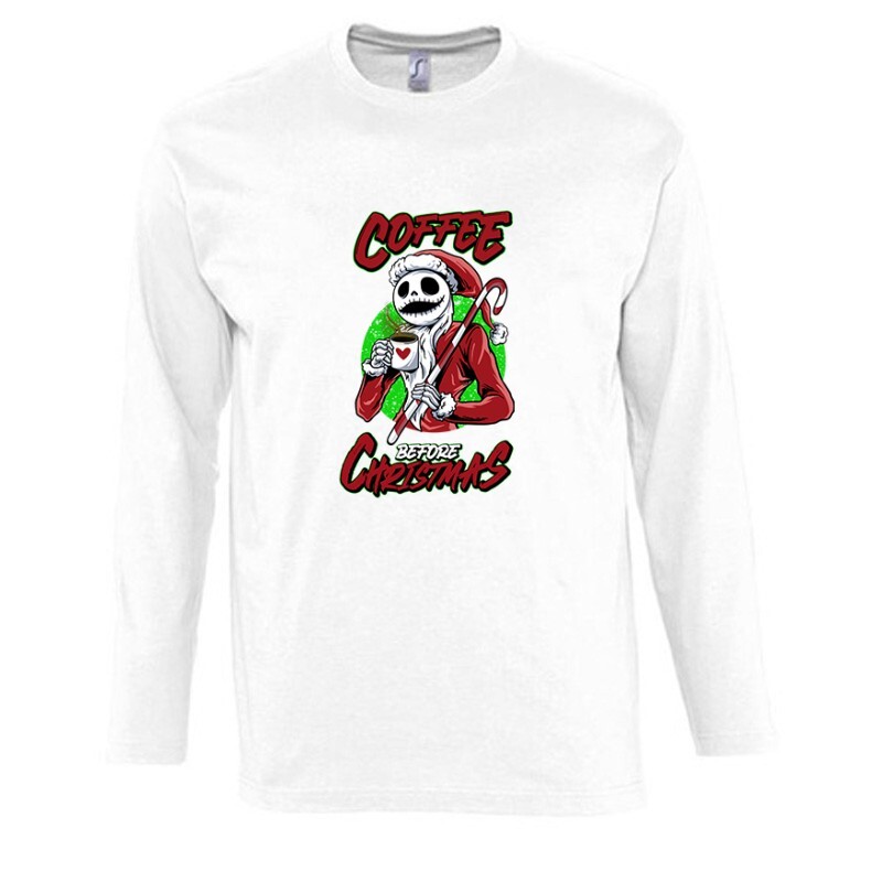 Ajándékot keresel egy ismerősödnek? A Coffee before christmas mintás pólónk ajándéknak is kiváló!