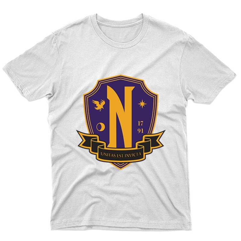Te is vérbeli sorozat rajongó vagy, aki tűkön ülve várja a következő részt? Akkor a Nevermore academy color color mintás pólónk pont Neked való!