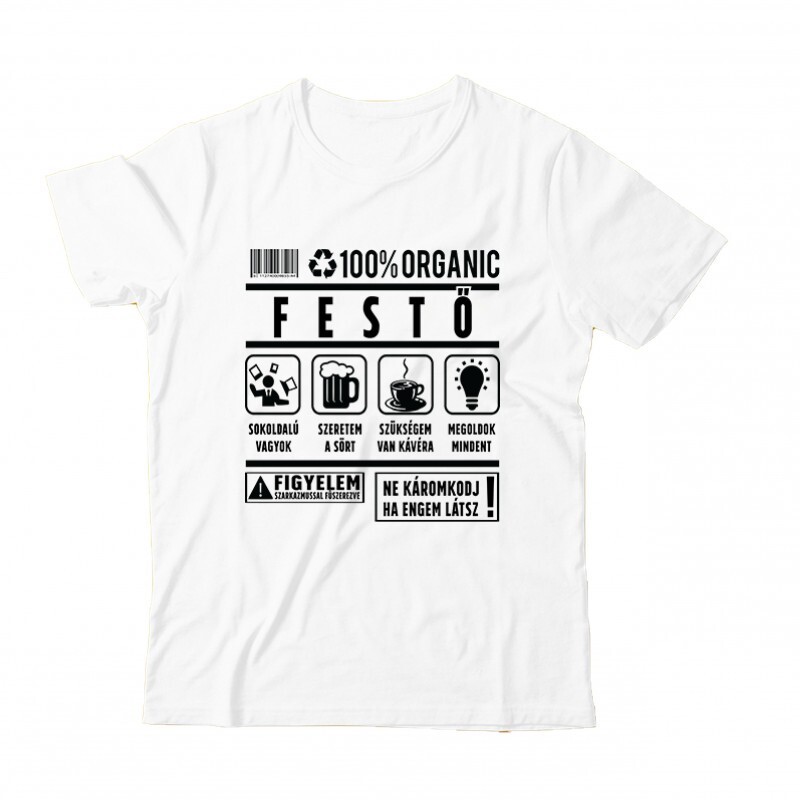 Akár egy szokatlan „munkaruhával” szeretnéd meglepni önmagad, akár a Festő ismerősödnek szánod ajándékba, az 100% organic festő mintás Festő póló egészen biztosan szuper választás!