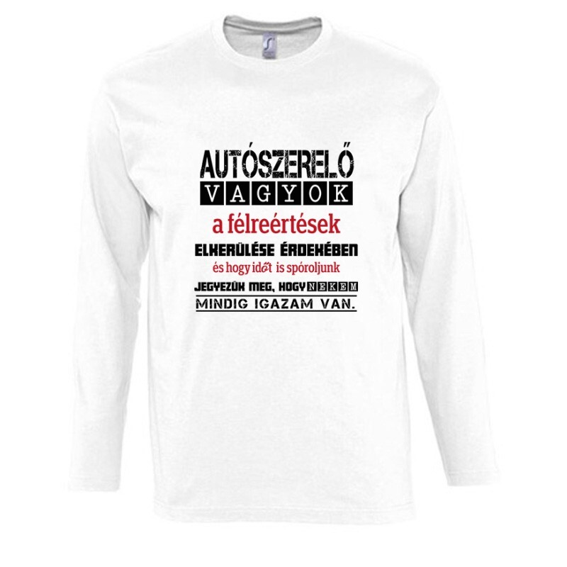 Szóval? Mi tart még vissza egy Igazam van autószerelő mintás póló vagy pulcsi megrendelésében?