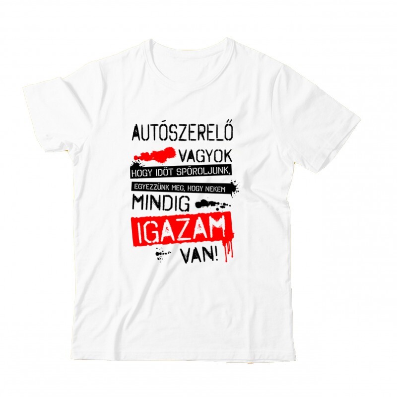 Az Autószerelő vagyok igazam van mintás póló neked készült, ha valami igazán ötletes és egyedi ajándékot szeretnél beszerezni!