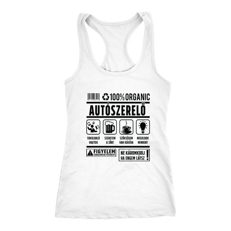 Az 100% organic (autószerelő) mintás póló neked készült, ha valami igazán ötletes és egyedi ajándékot szeretnél beszerezni!