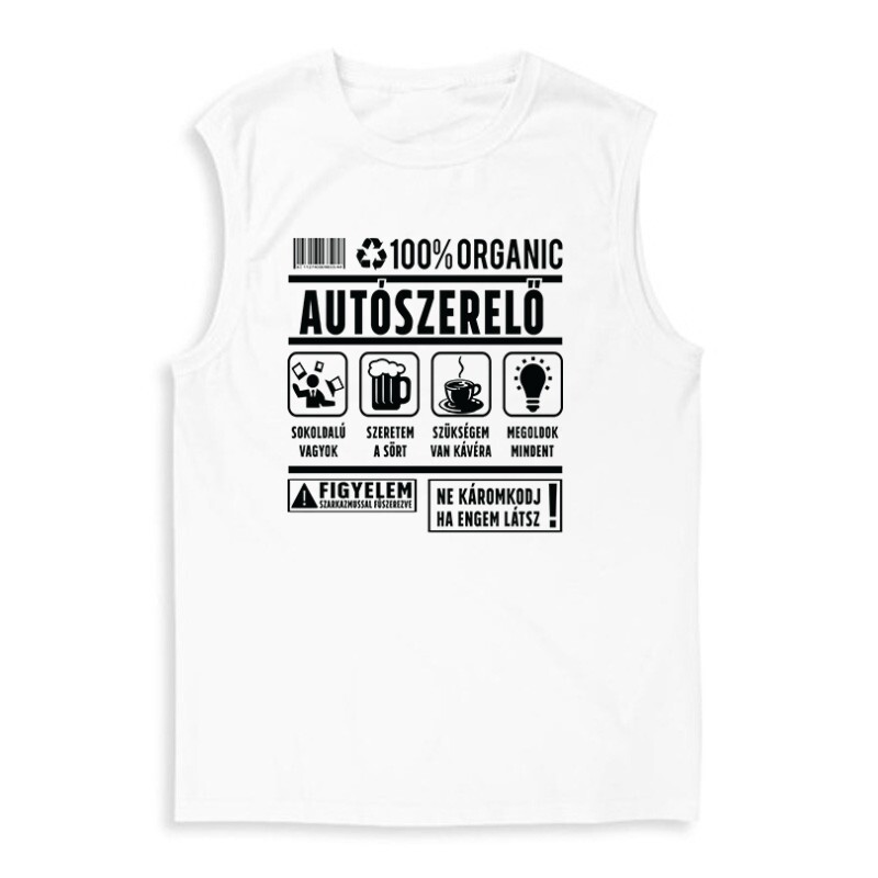 Akár egy szokatlan „munkaruhával” szeretnéd meglepni önmagad, akár a ismerősödnek szánod ajándékba, az 100% organic (autószerelő) mintás póló egészen biztosan szuper választás!
