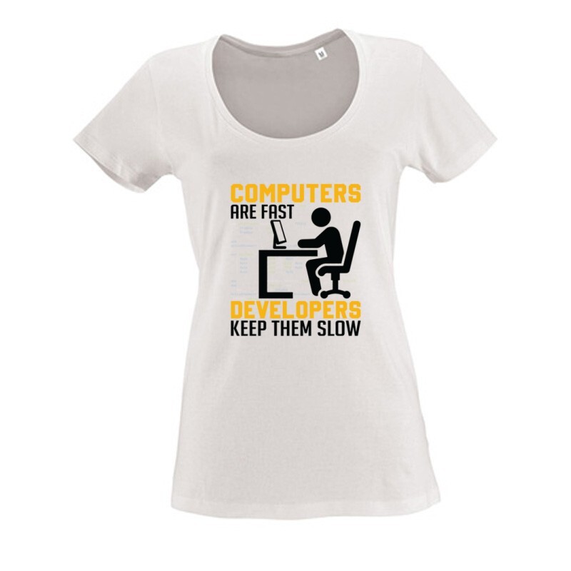 Az Developers keep them slow mintás Programozó póló megrendelhető férfi, női és gyermek változatban S-től 3XL-es méretig, így biztosan megtalálod a megfelelőt.