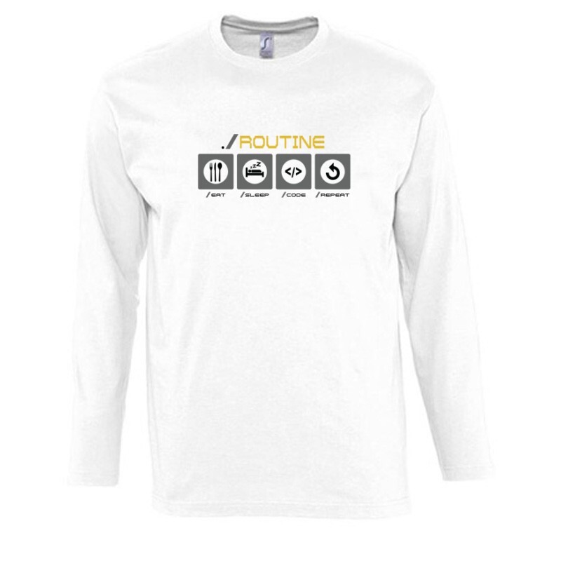 Az Routine Eat Sleep ... mintás Programozó póló neked készült, ha valami igazán ötletes és egyedi ajándékot szeretnél beszerezni!