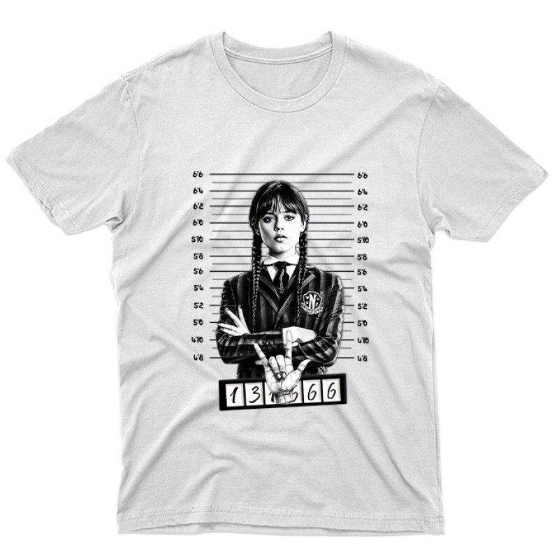 Wednesday Under Arrest mintás póló azoknak, akik nem félnek kitörni a halott hétköznapokból!