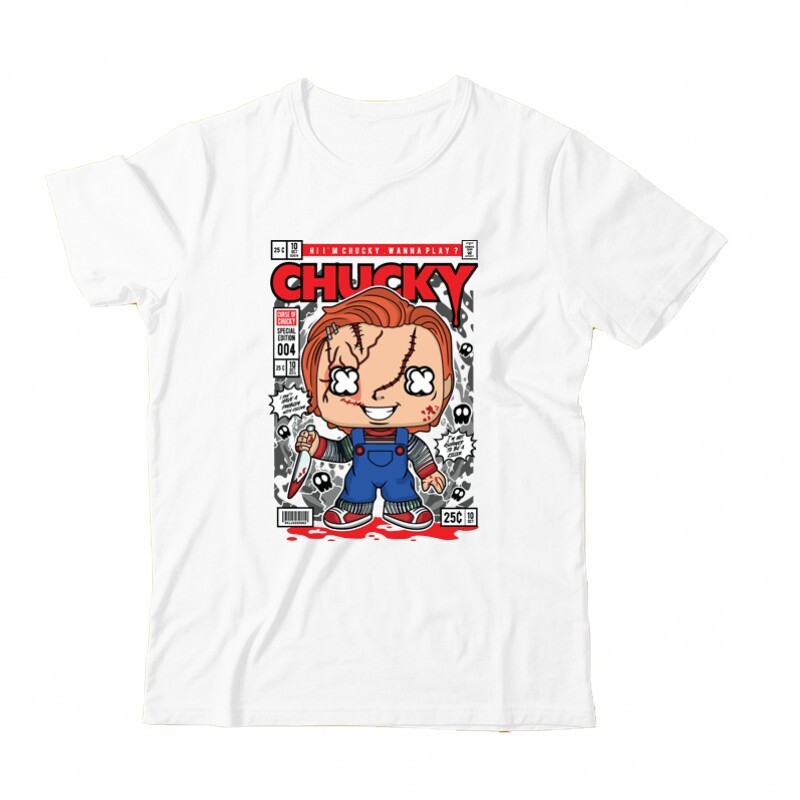 Az Chucky Pop Art mintás pólóink megrendelhetők női, férfi fazonban egyaránt S-től 3XL-es méretig.