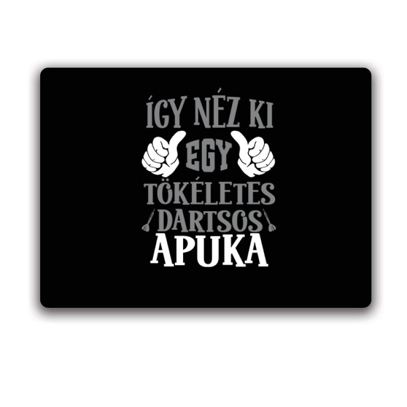 Válaszd Így néz ki egy tökéletes dartsos apuka mintánkat ami tökéletes ajándék lehet bárkinek, aki darts rajongó! A pólók és pulcsik nem csak kiváló minőségű anyagból készülnek, de az Így néz ki egy tökéletes dartsos apuka mintával kifejezik szenvedélyed a darts iránt. A vászontáska és tornazsák könnyedén hordozza a darts felszerelésedet, míg a kulacs és bögre minden nap emlékeztet a kedvenc sportodra. Rendeld meg most és mutasd meg a darts nemcsak egy sport, hanem egy életérzés!