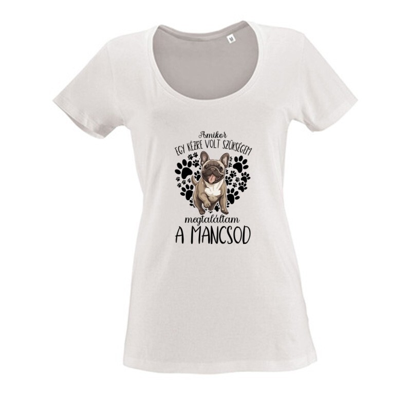 Feltétlen hűség és bizalom! Szinte mindenki ezzel kezdené, ha ismertetnie kellene egy kutya jellemét. Megmagyarázhatatlan rajongás és bizalom árad ezekből a fantasztikus állatokból, akiket így nem csoda, hogy olyan sok ember imád. Legyen kistestű, nagytestű, hosszú szőrű vagy rövid, fajtiszta, vagy keverék, csintalan esetleg a család hangulatfelelőse, biztos, hogy számtalan emlékezetes percet és rengeted boldog évet ajándékoznak ezek a rendkívüli négylábúak a gazdáiknak. Ha Te is oda (meg vissza) vagy a kutyákért, és feldobnád a ruhatárad valami egyedi darabbal, akkor nem is kell tovább keresgélned! A Megtaláltam a mancsod Francia Bulldog mintás kutyás pólónk az állatbarátok nagy kedvence, így biztosak vagyunk benne, hogy a Te szívedet is megdobogtatja majd!