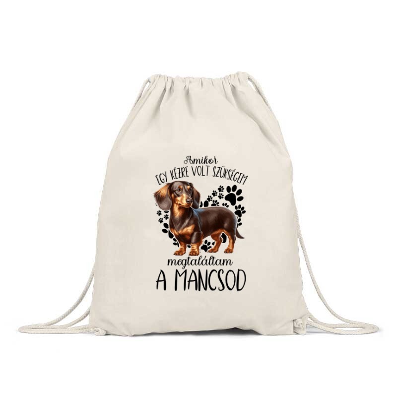 Megtaláltam a mancsod  Hosszúszőrű tacskó mintás hátizsák - hogy legyen miben hordani az egyedi mintás pólóidat