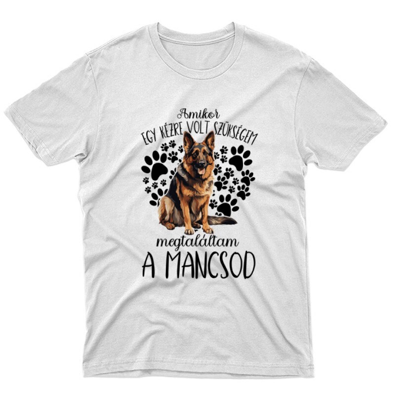 Ajándékot keresel egy kutyarajongó ismerősödnek? A Megtaláltam a mancsod Németjuhász mintás Kutyás pólónk ajándéknak is kiváló!