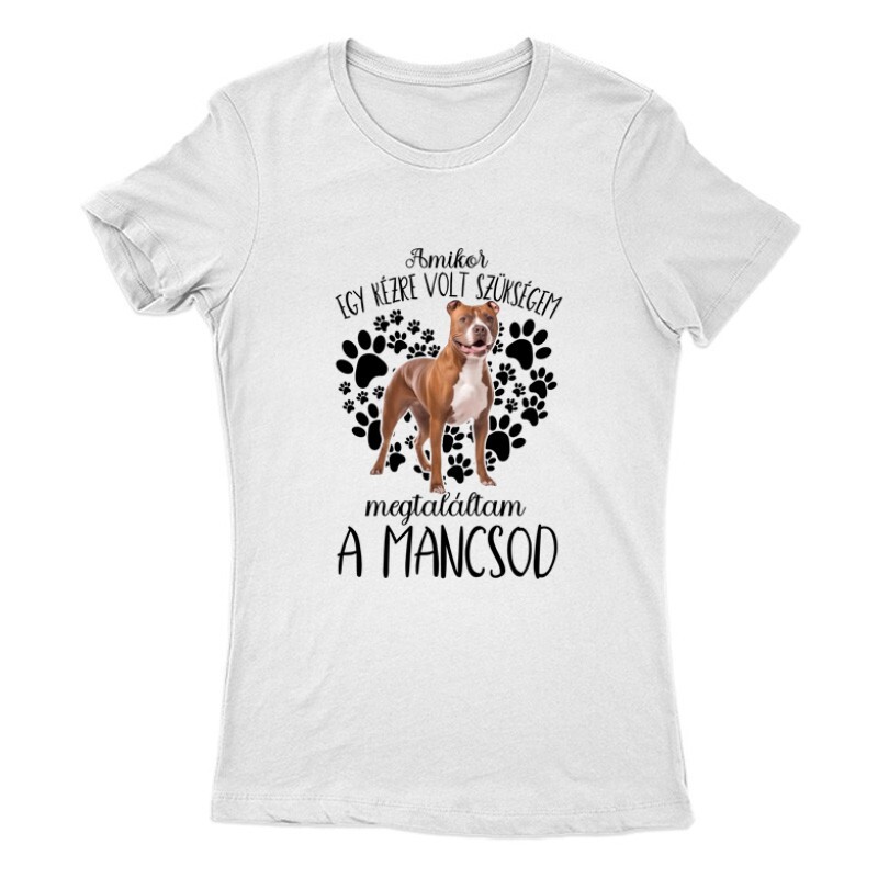 A Megtaláltam a mancsod  staffordshire terrier mintás Kutyás póló megrendelhető női, férfi és gyerek fazonban egyaránt S-től 3XL-es méretig.