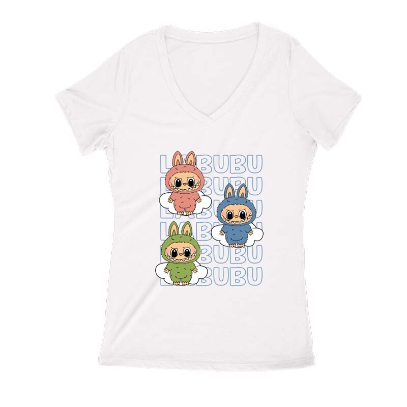 Blue labubu and friends Női V Kivágott póló