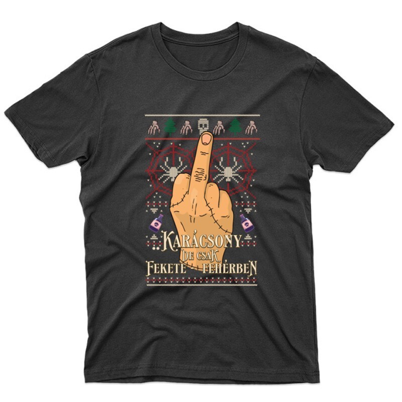 A Karácsony de csak fekete fehérben mintás póló megrendelhető női, férfi és gyerek fazonban egyaránt S-től 3XL-es méretig.